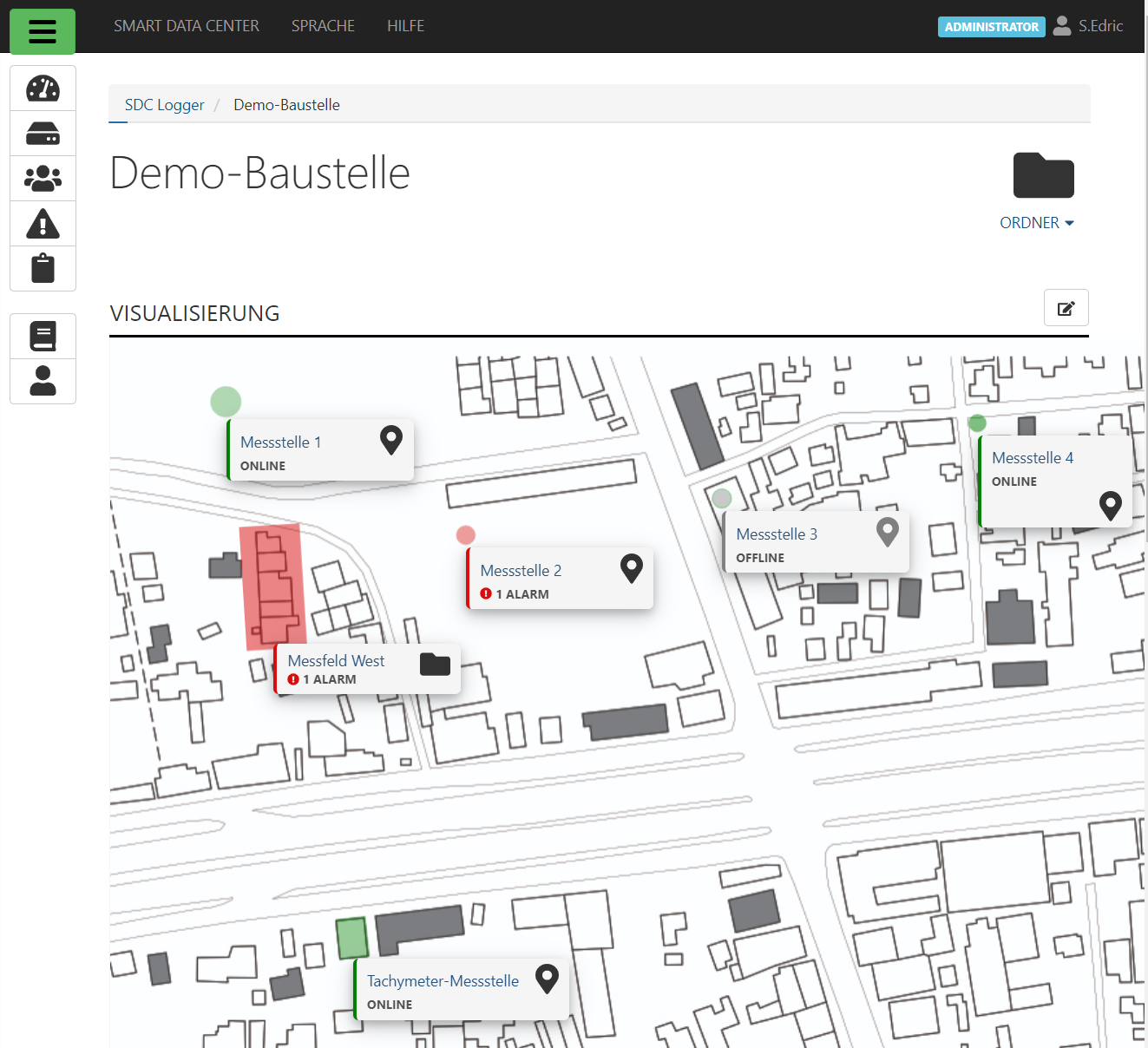 Überwachen Sie den Zustand Ihres Messnetzwerks per Live-Monitoring, konfigurieren Sie Alarme und Warnmeldungen. Bei Alarmen werden alle erforderlichen Nutzer sofort alarmiert. Selbst unterwegs.